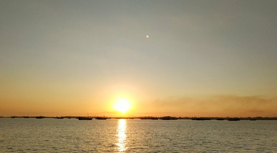 Salah satu hal yang aku suka dari bangun dini hari kaya gini tuh udaranya masih sejuk, vibesnya beda dan rasanya tenang banget. Pas aku liat ke sisi timur dermaga, katanya sunrise disini ngga kalah keren. Okelah ngga pake lama aku pasang gorillapod dan HP kentangku (yes, pake alat seadanya).
