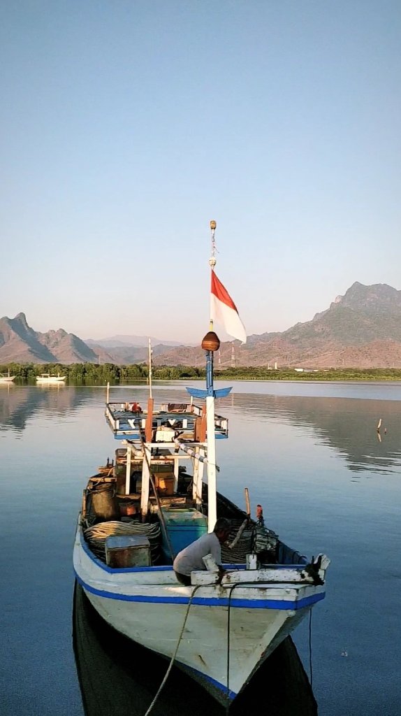 Nunggu sunrise sambil ngemil snack sama ngobrol ringan bareng kaka dan temen ngga kerasa langit udah mau terang aja. Dan ternyata di sekitar dermaga banyak banget kapal-kapal besar, juga ada sebagian nelayan lokal yang mau berangkat mancing dan orang-orang yang lagi mancing juga. Lumayan rame juga disini ternyata. Nah, kalo di sebelah barat keliatan pemandangan gunung dan hutan ijo yang ngga kalah indah beserta boat yang lagi bersandar.